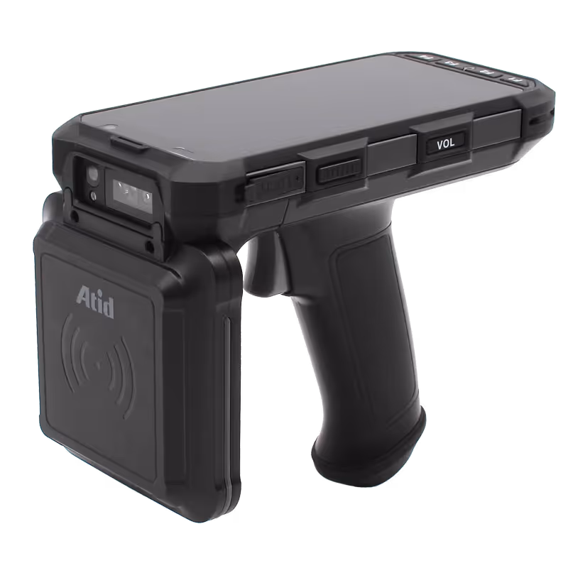 AT909はオクタコア2.0GHz/4GB RAM、5.5型HDを備えたUHFハンディです。円偏波4.5dBiアンテナと最大30dBmで広域読取、1D/2D・デュアルカメラ、4G/Wi-Fi/BLE/GPSを搭載。IP65と1.5m耐落下、7,200mAh電池で物流・在庫の連続運用に最適。
