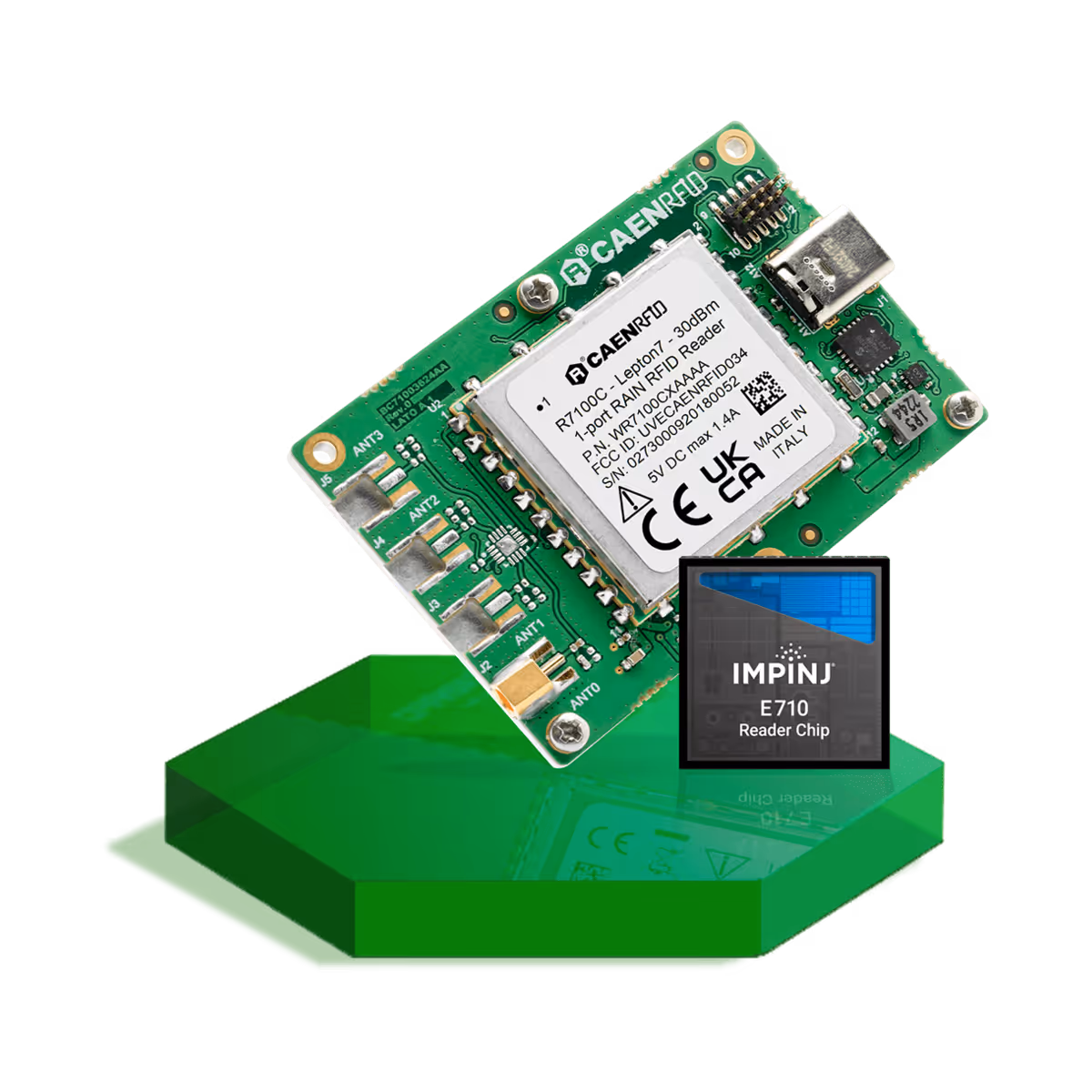 easy2read ©製品ラインの組み込みリーダーであるLepton7 x1 (モデル R7101CU) は、低電力、高性能 RAIN RFID アプリケーション向けの超小型リーダーです。RAIN RFID (UHF EPC Class1 Gen2、ISO 18000-63) 準拠。マルチリージョンサポート。
