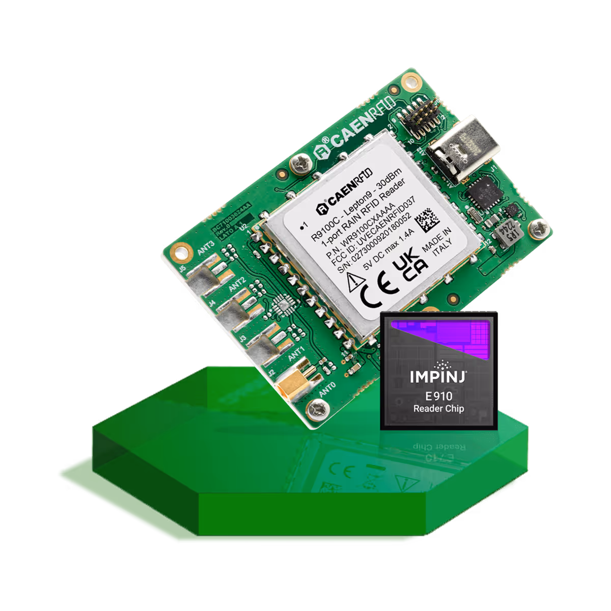 モジュールの無線周波数コアには、Impinj E910 IC が採用されており、高速な読み取り速度を実現するとともに、密集したリーダー環境やタグ環境でも優れた性能を発揮します。