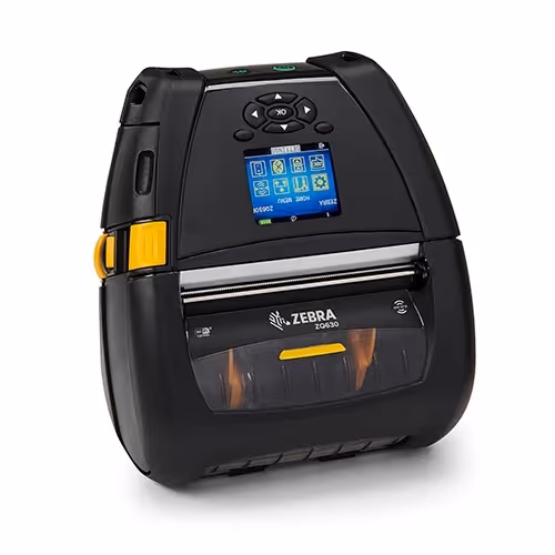 Zebra ZQ630は、4インチ幅のRFID対応産業用モバイルプリンタです。203dpi解像度、115mm/秒の高速印刷。6800mAh大容量バッテリで長時間シフトに対応。802.11ac Wi-Fi/Bluetooth 4.1搭載、インスタントウェイクアップで待ち時間ゼロ。IP54防塵防滴、1.5m落下耐性。倉庫・物流でのラベル印刷に最適。