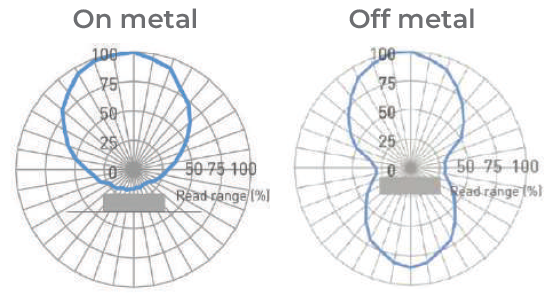 金属面上および非金属面上でのアンテナパターン